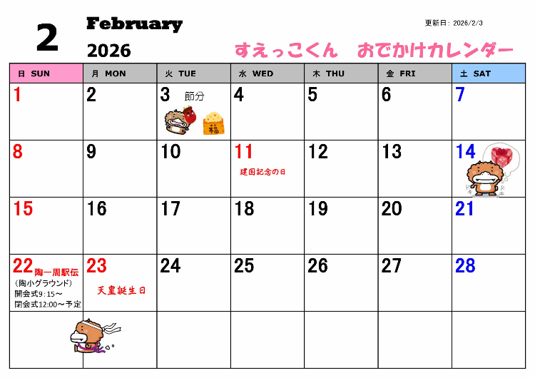 (更新日・出動予定順)★2026年01月29日 すえっこくん2月のおでかけ予定 更新しました。